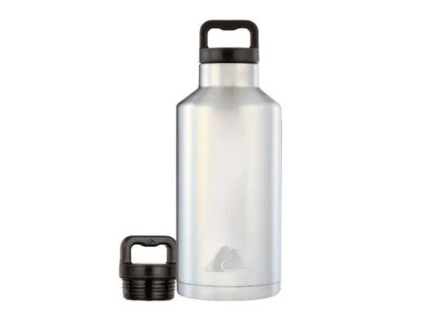 The water bottles are silver stainless steel with a black screwcap lid, 4.41 inches wide by 11.5 inches tall and feature an Ozark Trail logo on the side. The model number, 83-662, appears on the product packaging but not on the bottle itself. They were priced around $15.