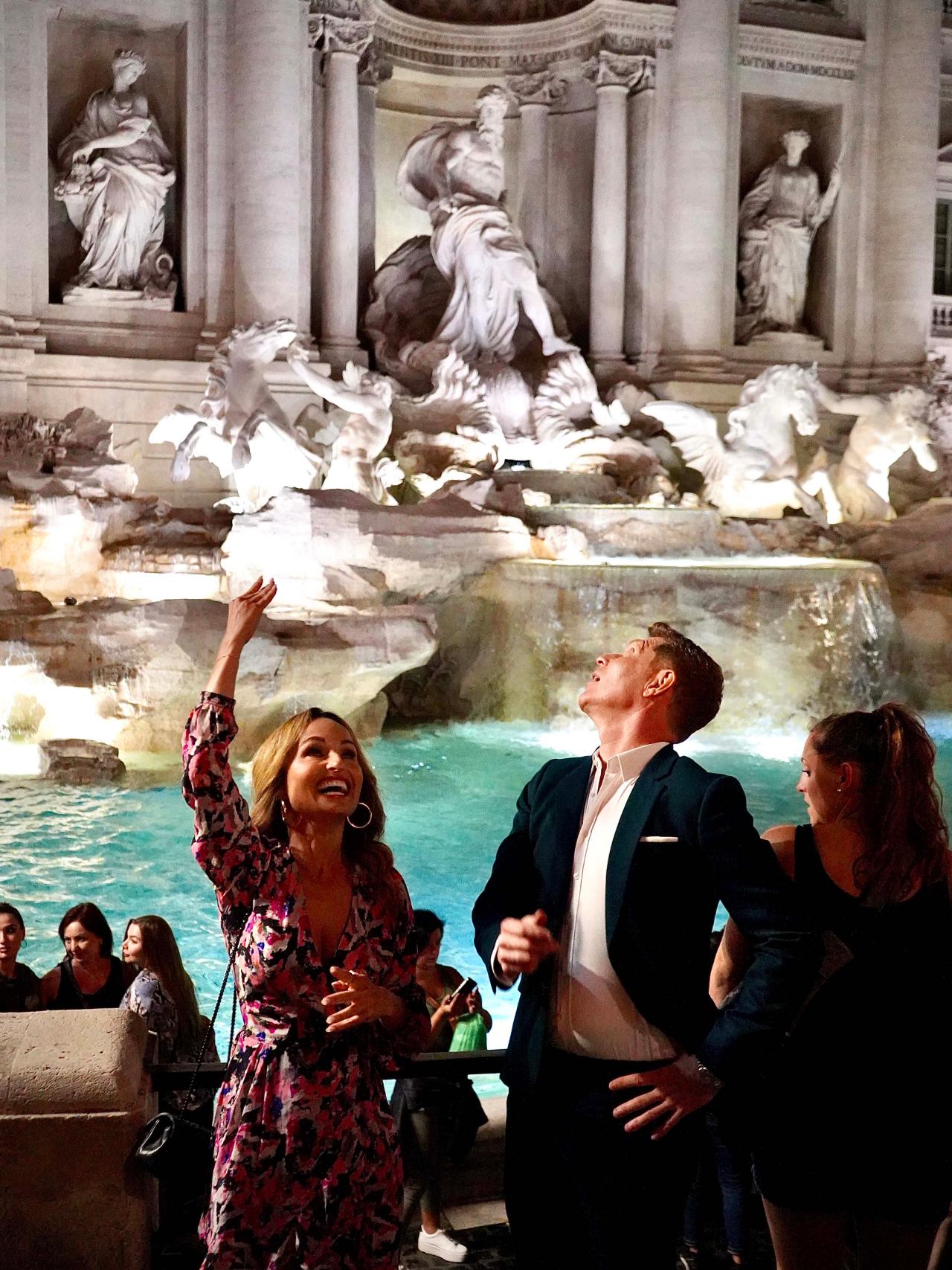 It wouldn't be a trip to Rome without a visit to the Trevi fountain. The old saying goes that if you toss a coin backwards into the fountain, using your right arm over your left shoulder, you'll eventually return to Rome. And you better believe that Bobby and Giada hope that legend to be true.