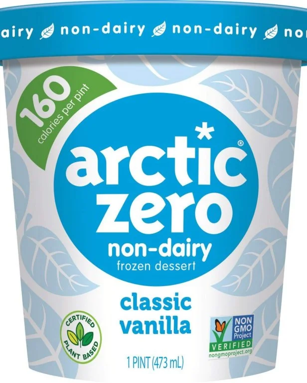 This is a unique frozen dessert made from fava bean protein concentrate with 160 calories and 0 grams of fat for the entire container. This vegan variety is available in flavors including Hint of Mint, Cookie Shake and Pistachio.