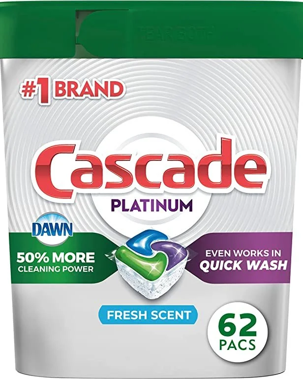 These easy-to-use pods outperformed almost all other detergents in our product test. (The only pods that cleaned even more efficiently are the Cascade Platinum Plus, which we believe can be reserved for tough loads.) With the Cascade Platinum pods we found our dishes to be completely free of food and grime after a load on the normal cycle. Our dishwasher had no odor after each cleaning and our glassware was streak-free. Ultimately, we recommend Cascade Platinum for everyday cleans and your average load of dishes, but it may not stand up to a load post-holiday meal.