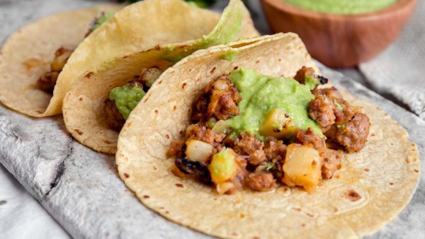 Potato-Chorizo Tacos with Simple Avocado Salsa
