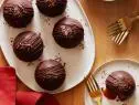 Use a vegetable peeler to shave 1 tablespoon of chocolate curls from the chocolate. Put the remaining chocolate in a small microwave-safe bowl and microwave in 30-second intervals, stirring in between each, until melted, about 1 minute. Drizzle the melted chocolate over each dome and sprinkle with the chocolate shavings. Serve immediately.