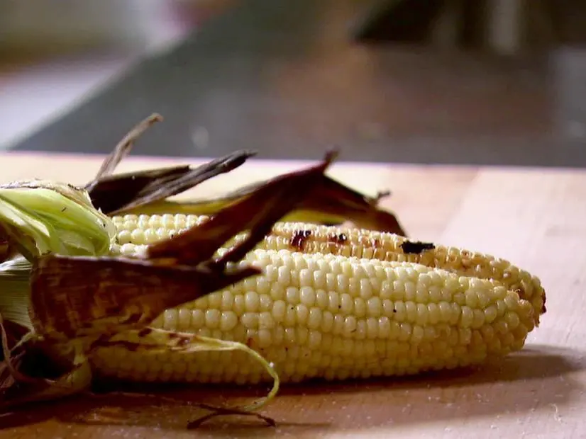 Grill the corn for a total of 20 minutes, turning it every 5 minutes. Remove the ear from the grill and carefully peel back the husk. Sprinkle the kernels with salt and serve.