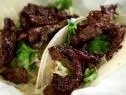 On the grilled tortillas, pile some Korean slaw, dressing, beef, reserved and reduced marinade and extra Sriracha to taste. Then, chow down.