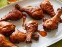 For the chicken: Preheat the oven to 375 degrees F. Rinse and pat dry the drumsticks. Mix the oil, chili powder, garlic powder, and some salt and pepper in a medium bowl or resealable plastic bag. Toss the drumsticks in the seasoned oil to coat well. Bake the drumsticks on a wire rack placed on a baking sheet (so air circulates around chicken) until very tender and the skin is crisp, 50 minutes.