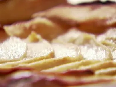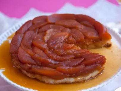 Put the same skillet used to measure out the pie crust, over medium-high heat, and add the butter. Sprinkle 3/4 of the sugar mixture over the melted butter. Arrange the apple halves flat side down in the pan. Sprinkle the remaining sugar over the apples. Cook until the caramel syrup turns a deep golden brown color, about 15 minutes. Carefully arrange the chilled pie crust over the top of the cooked apples and use a spatula to tuck in the edges.