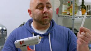 Duff must create an edible adhesive to reattach broken parts to his cake.