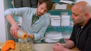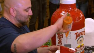 Geof uses hot sugar and silicone molds to make edible hot sauce bottles.
