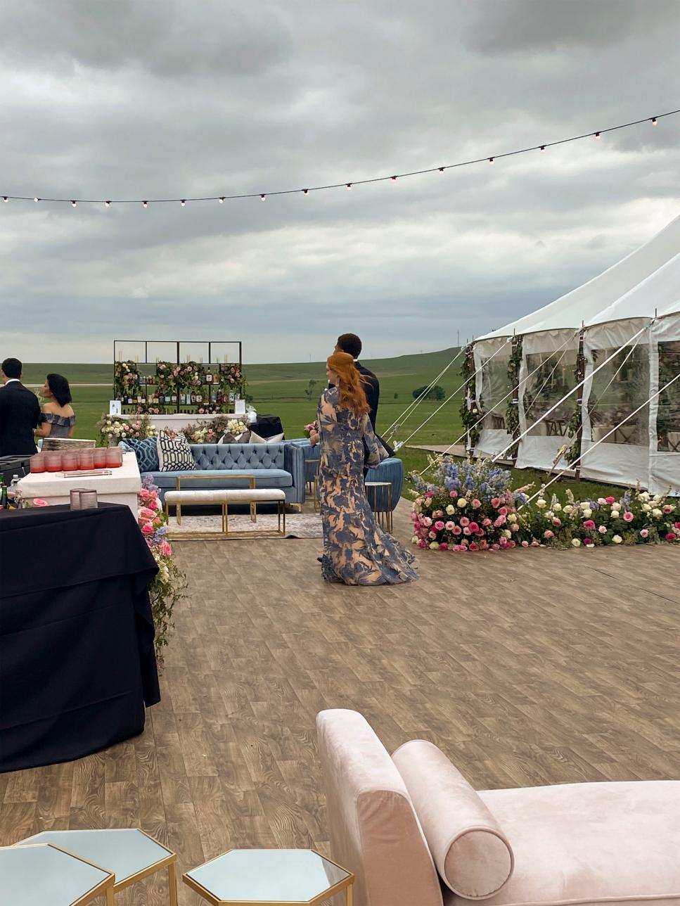 Alex wanted a bright and floral theme for the reception. It took a big team to get the infrastructure up in time for the wedding day, but they pulled it off perfectly.